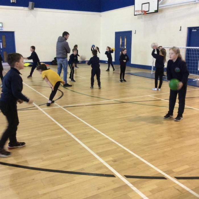 Tá daltaí Rang 4 ag dul ó neart go neart agus iad ag forbairt na scileanna bunghluaiseachta s’acu gach seachtain faoi stiúir Claire. Bainimid muid an-sult as na seisiúin seo. Nach muid atá aclaí!